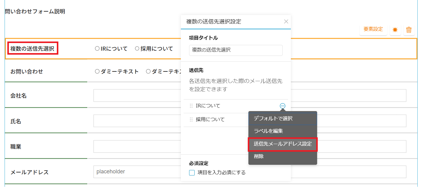 連絡先項目に「複数の送信先選択」という項目が追加されました。