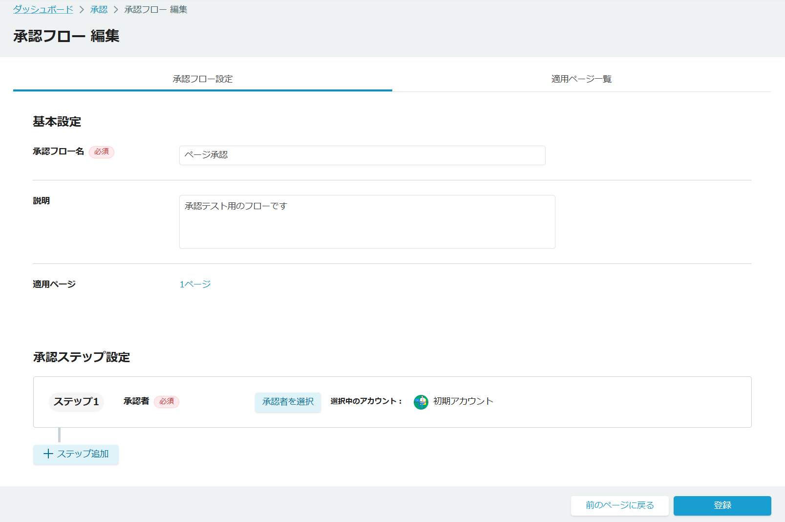 承認・申請管理では、ページの公開に対して承認フローを設定できます。 承認フローは最大3段階までの多段階設定が可能です。ページ編集者と承認者を分けて管理したい場合に活用いただけます。