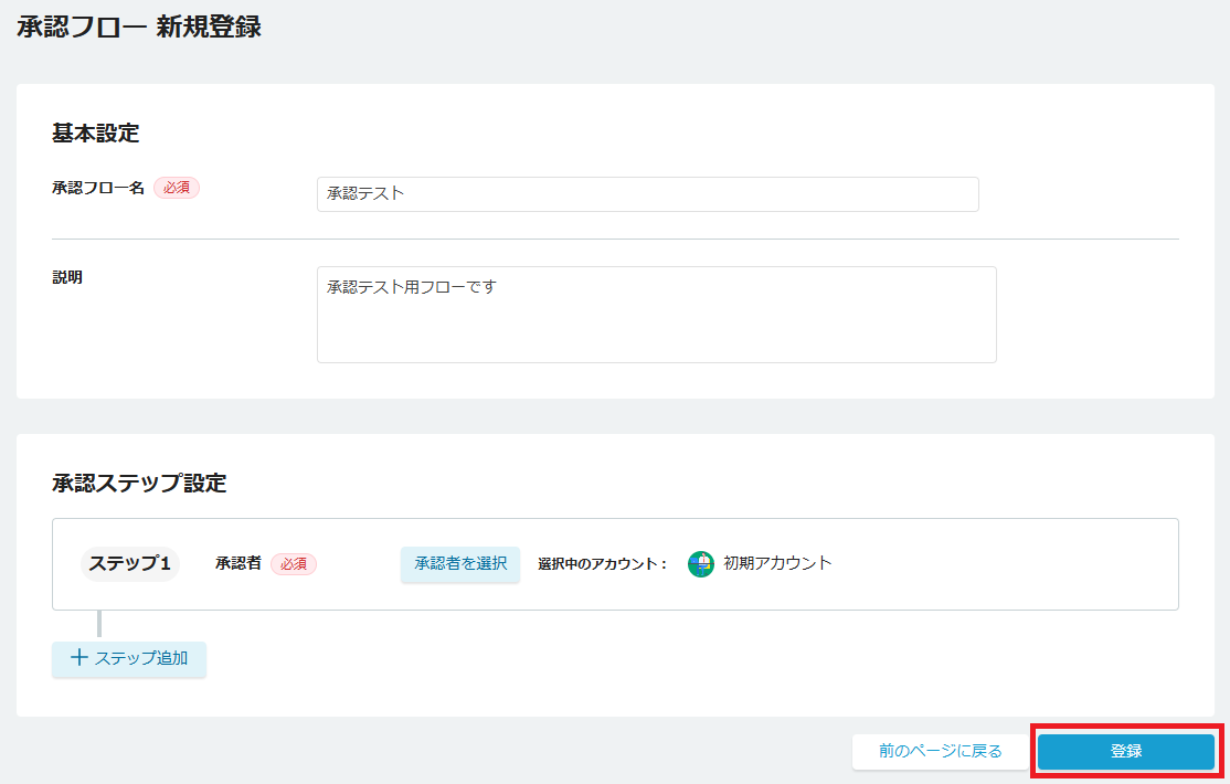 承認フロー新規登録
