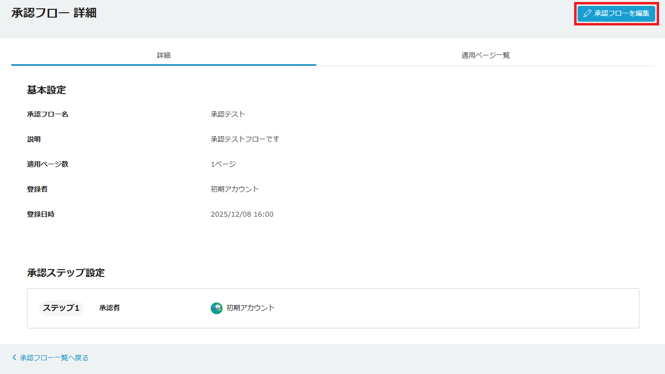 また、この詳細画面から「承認フローを編集」をクリックすることで、設定の変更が可能です。