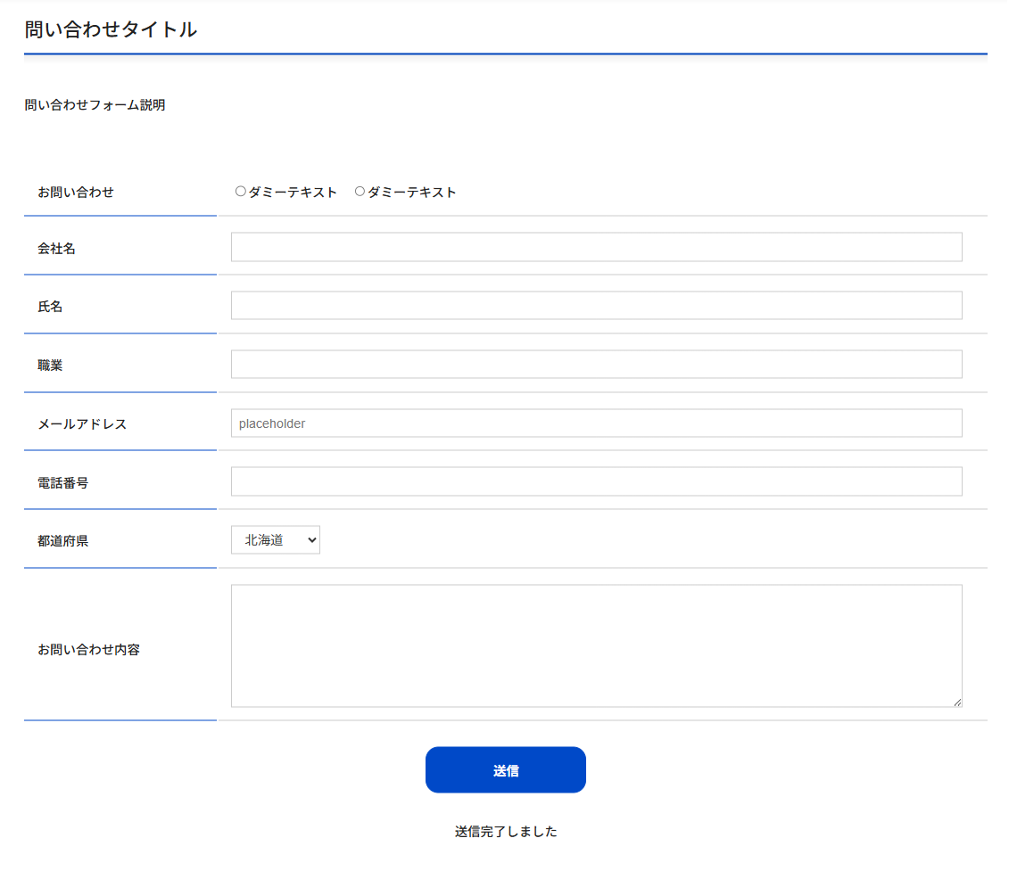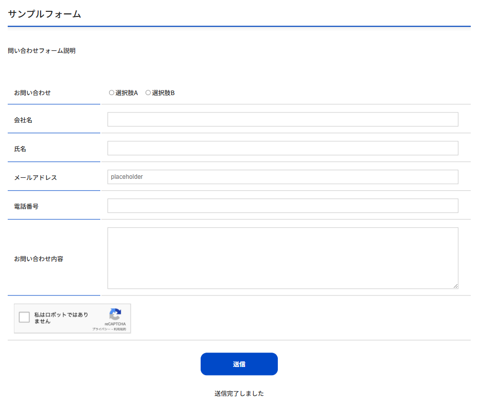 上記手順でフォームの完成です。